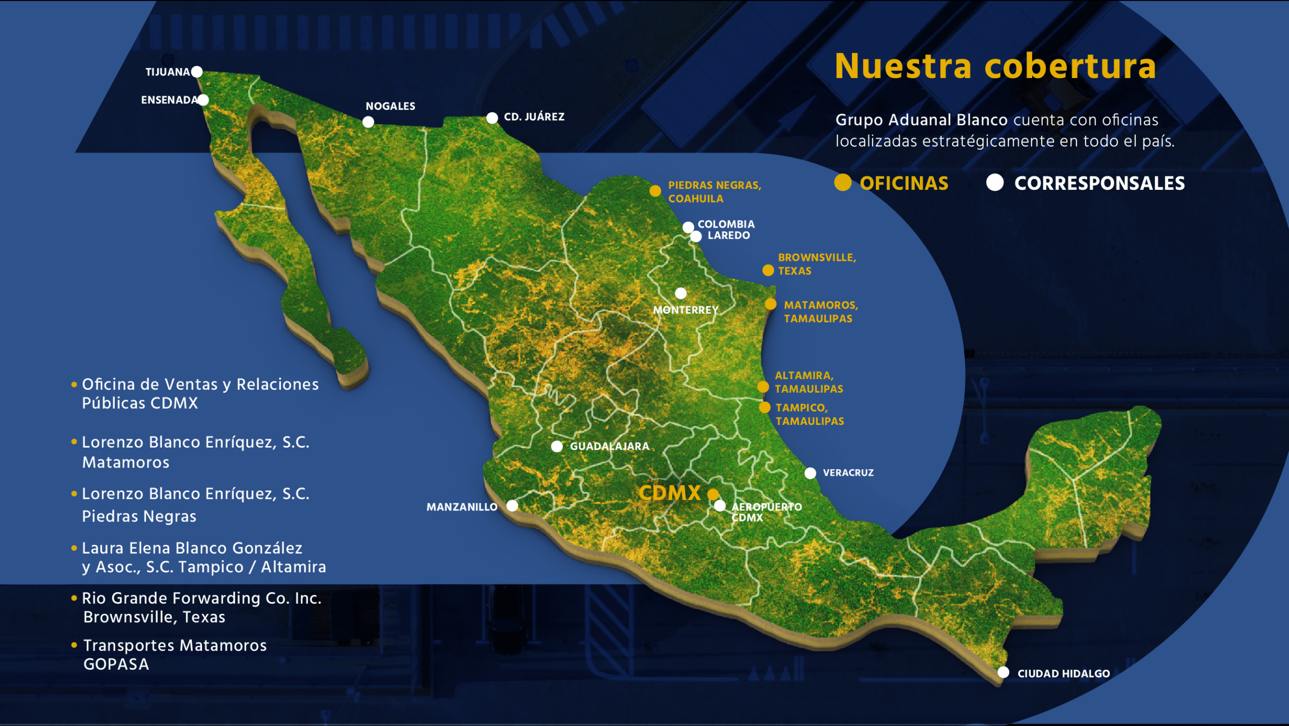 Contamos además, con una amplia red de corresponsales en diversas aduanas de México, lo que no permite
